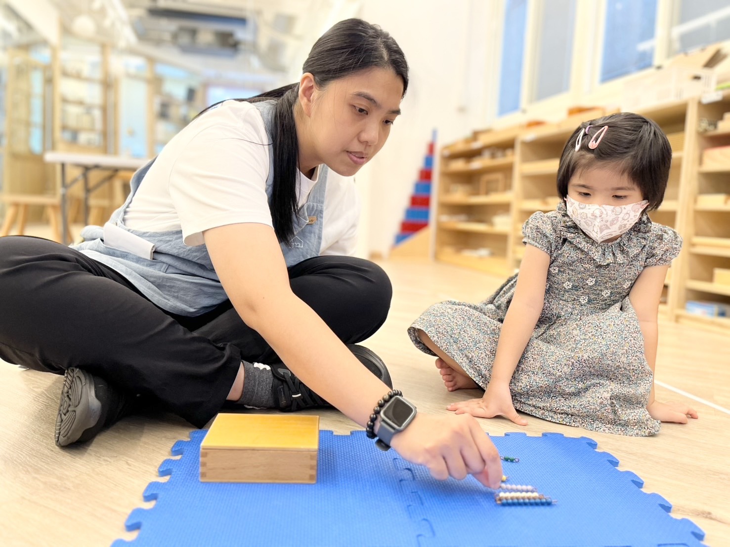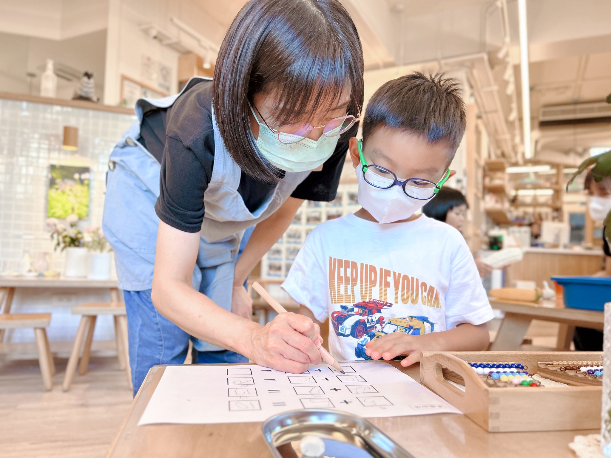 蒙特梭利課程,孩子們在課堂中獨立的完成工作操作,學習理解老師的指令與團體規則